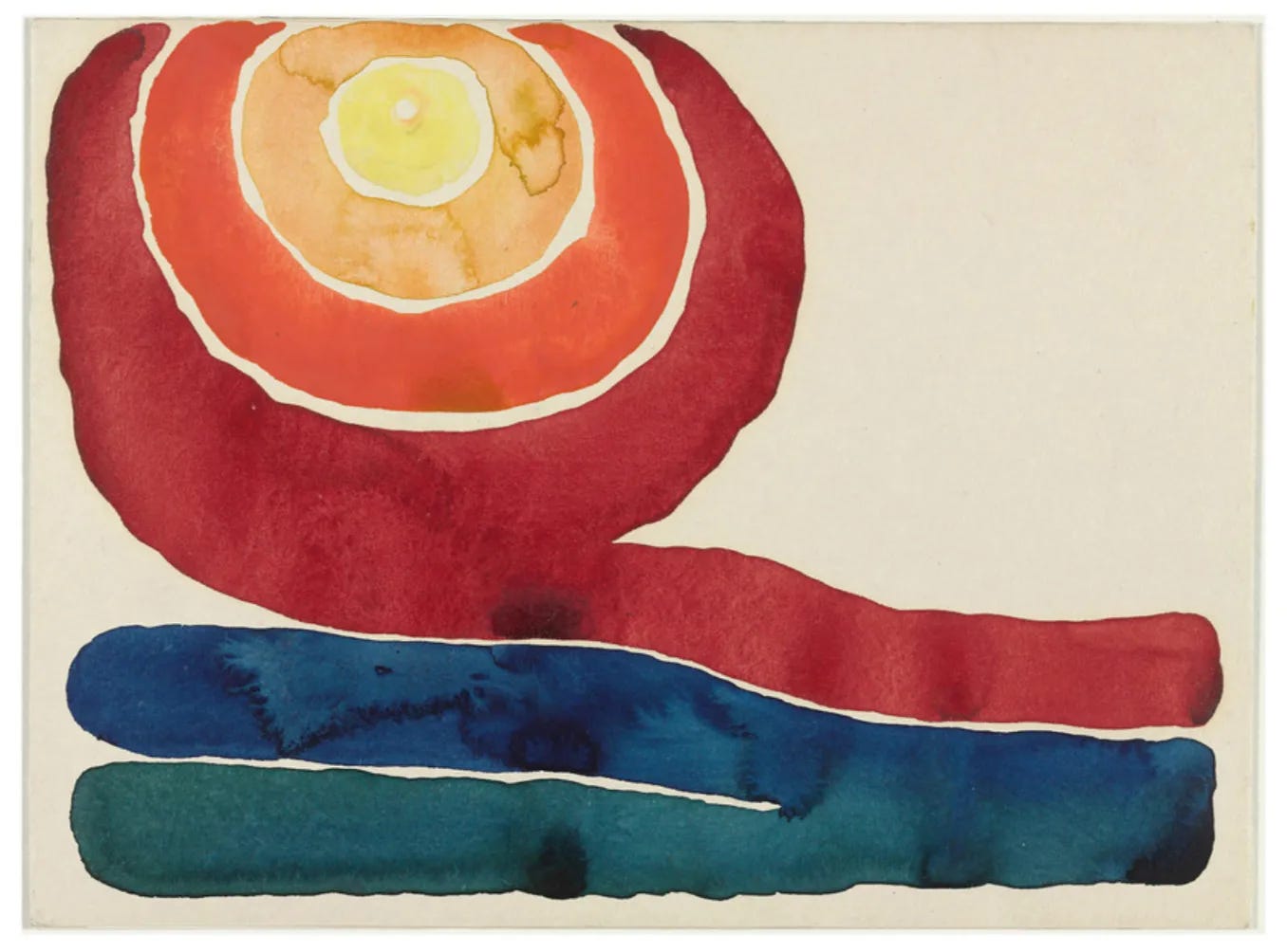 This watercolour is one of several O’Keeffe made of an evening star while living in Texas and the vibrancy of colour and expanse of space evoke the desert landscape she was exploring.